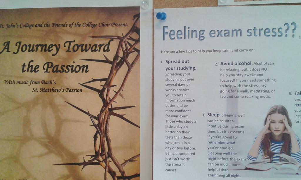 It’s ironic that Holy Week falls into what may be the most stress-filled week of many students’ lives. There’s nothing holy about the first week of exams. In fact, as I prepare at Church for a week of worship, contemplation, and sacrament, a week set apart from all others, my office at the college is a steady stream of stressed, maxed-out students. This is ironic because in both contexts it is a week like no other. Everything else is put on hold as we focus on one thing which seems to matter more than anything else in the world.
